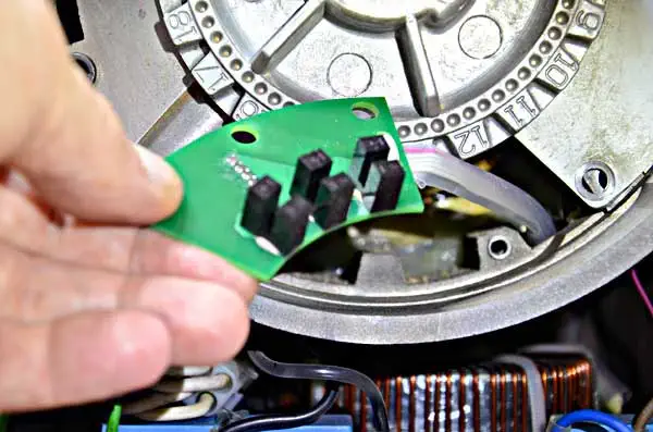 Wie die Zeit vergeht! Seit der Inbetriebnahme meiner DVR-Xp (2009) liegen jetzt (2015) bereits sechs störungs- und wartungsfreie Jahre ungetrübten Drechselvergnügens. Doch was war das? Kurz nach dem Einschalten, noch bevor ich die Schruppröhre ansetzen kann, trudelt das Werkstück kraftlos aus! Sofort vermute ich, dass sich mitlerweile so viel Holzstaub im Spindelkasten angesammelt hat, dass der optische Sensor nichts mehr "sehen" kann. Umgehend ziehe ich den Netzstecker. Ich bin überzeugt, dass eine gründliche Entstaubung von Spindelkasten und optischem Sensor die Störung beheben wird: