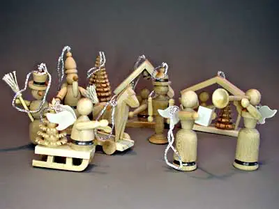 Weihnachtsfigürchen zum AnhängenDas Weihnachtsfest kann kommen! Für meine Lieben habe ich rechtzeitig kleine Geschenke gedrechselt. Und damit ich auch selbst etwas geschenkt bekomme, werde ich dem Weihnachtsmann das folgende selbst geschriebene Gedicht aufsagen: