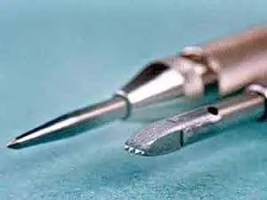 Punzen fertigt normalerweise ein Graveur an. Es gibt aber einfache Muster, die man auch leicht selbst zurechtfeilen kann. Als ich vor einiger Zeit ein verlorengegangenes Zierteil eines Schrankaufsatzes ersetzen wollte, kam mir die Idee, einen dafür benötigten Punzen als Einsatz für einen selbstschlagenden Körner mit Federmechanik anzufertigen (siehe Bild 1). Mit diesem gut handhabbaren Werkzeug ist wegen der gleichmäßigen Schlagstärke ein sehr sauberes Arbeitsergebnis zu erreichen.