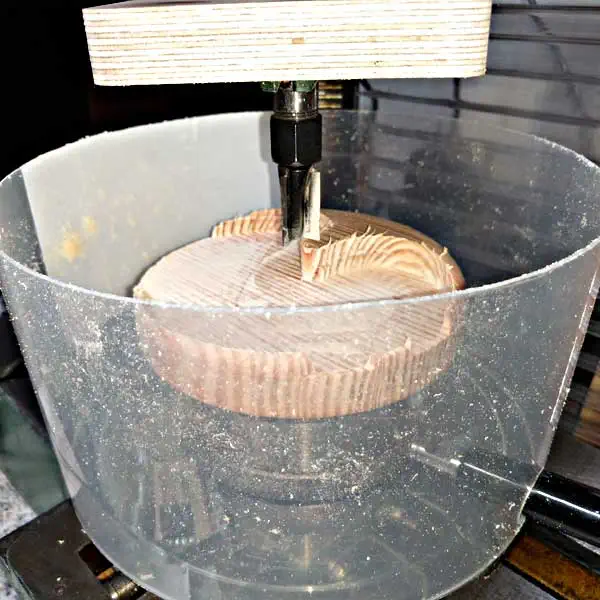Die in Estlcam erzeugte G-Code-Datei habe ich inzwischen auf den Linuxrechner kopiert und in bCNC geöffnet. Werstück einspannen, alle Einstellungen siebenmal kontrollieren - Die Sieben ist meine Glückszahl! - Dann Daumen dicht über den Notaustaster halten und "Start" anklicken.