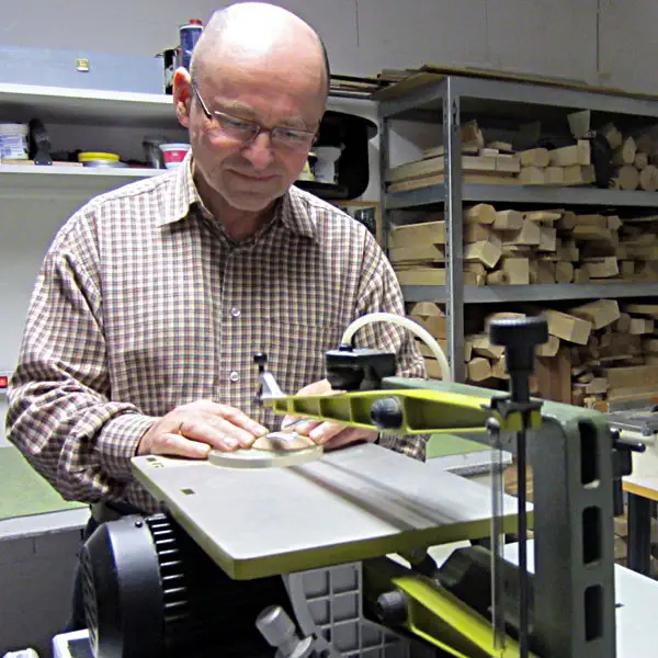 I saved building the regulators for last. It takes a bit of imagination to break down the rather complex shape into easy-to-turn parts! My fretsaw machine - which is unfortunately rarely used - also comes into play! For the complicated shaped mouthpiece made of silicone rubber, I suggest to Robert that he use the original part and only make a wooden attachment onto which the mouthpiece can be pushed and - like the original - secured with a cable tie.
