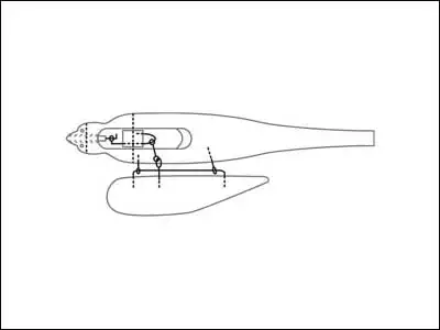 Wie die Einzelteile durch Drahtösen zu verbinden sind, damit der Kuckuck mit den Flügeln schlägt und den Schnabel öffnet, zeigt die Zeichnung Bild 11, die ebenfalls nach dem Vorbild der noch vorhandenen Wachtel angefertigt wurde. Um die Zeichnung übersichtlicher zu gestalten, wurde nur ein Flügel mit den zugehörigen Verbindungsdrähten gezeichnet.
