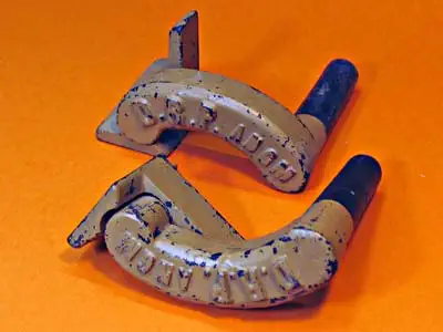 Besonders einfallsreich sind die gußeisernen Seitenbankhaken konstruiert. Die Aufschrift: "Deutsches Reichspatent zeigt, dass robuste Spanneinrichtungen ganze Schnitzergenerationen überdauern können. Die Nachteile käuflicher Spanneirichtungen aus Metall sind nicht ganz so offensichtlich: Sie sind meist recht teuer und nicht nur der Anfänger läuft ständig Gefahr, die Schneiden seiner Beitel empfindlich zu beschädigen.