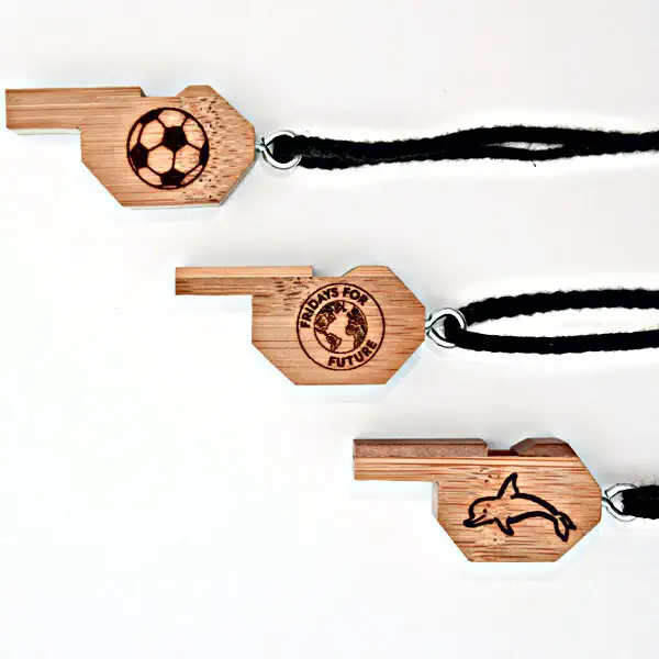 Die Idee, meinen Lasergravierer zu verwenden, um die Pfeifen mit passenden Motiven weiter zu verschönen, konnte ich deshalb erst bei der zweiten Kleinserie verwirklichen. Übrigens: So recht vertieft in meine Holzarbeiten habe ich früher schon mal den Ruf zum Mittagessen überhört! Aber seit meine Frau ihre Trillerpfeife benutzt, profitiere auch ich von regelmäßigen warmen Mahlzeiten!